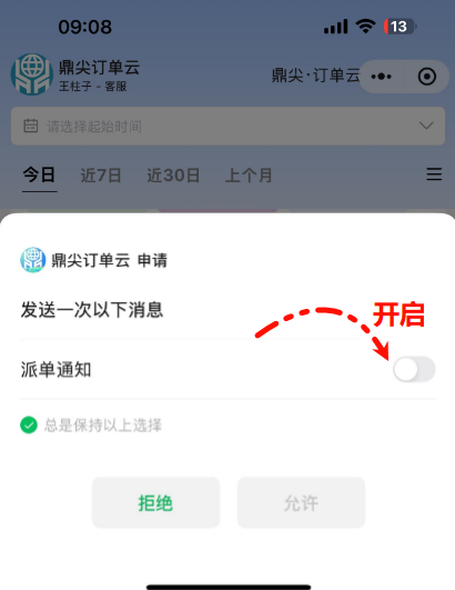 扫码 或者在微信搜索(鼎尖订单云),授权微信登陆,并且允许通知即可。