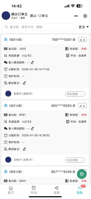 私密派粉现在已经成了各大办公室的硬性需求,这样分派给客服的粉是直接端到端的,再也不用担心派到群里的粉,被别人拍照,截图···顺手就被盗了。