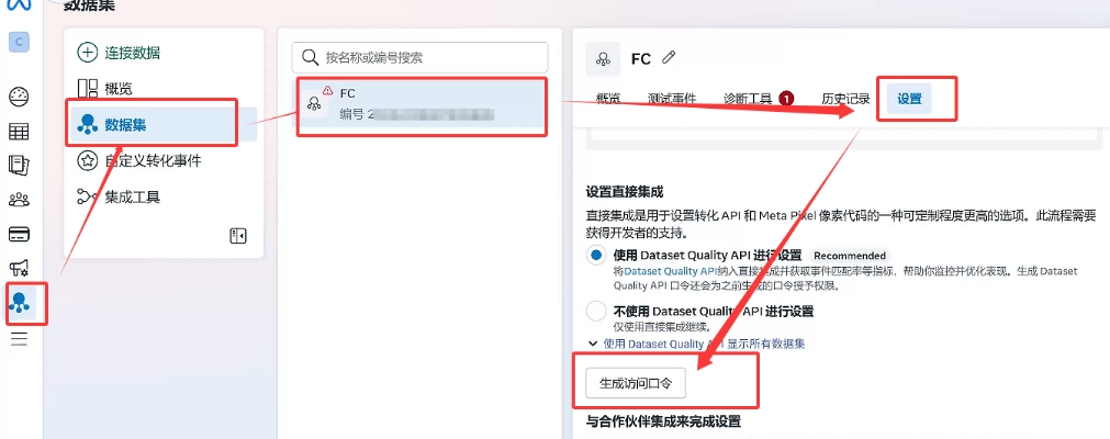 第一步:广告账户里面选择API 和 像素代码。